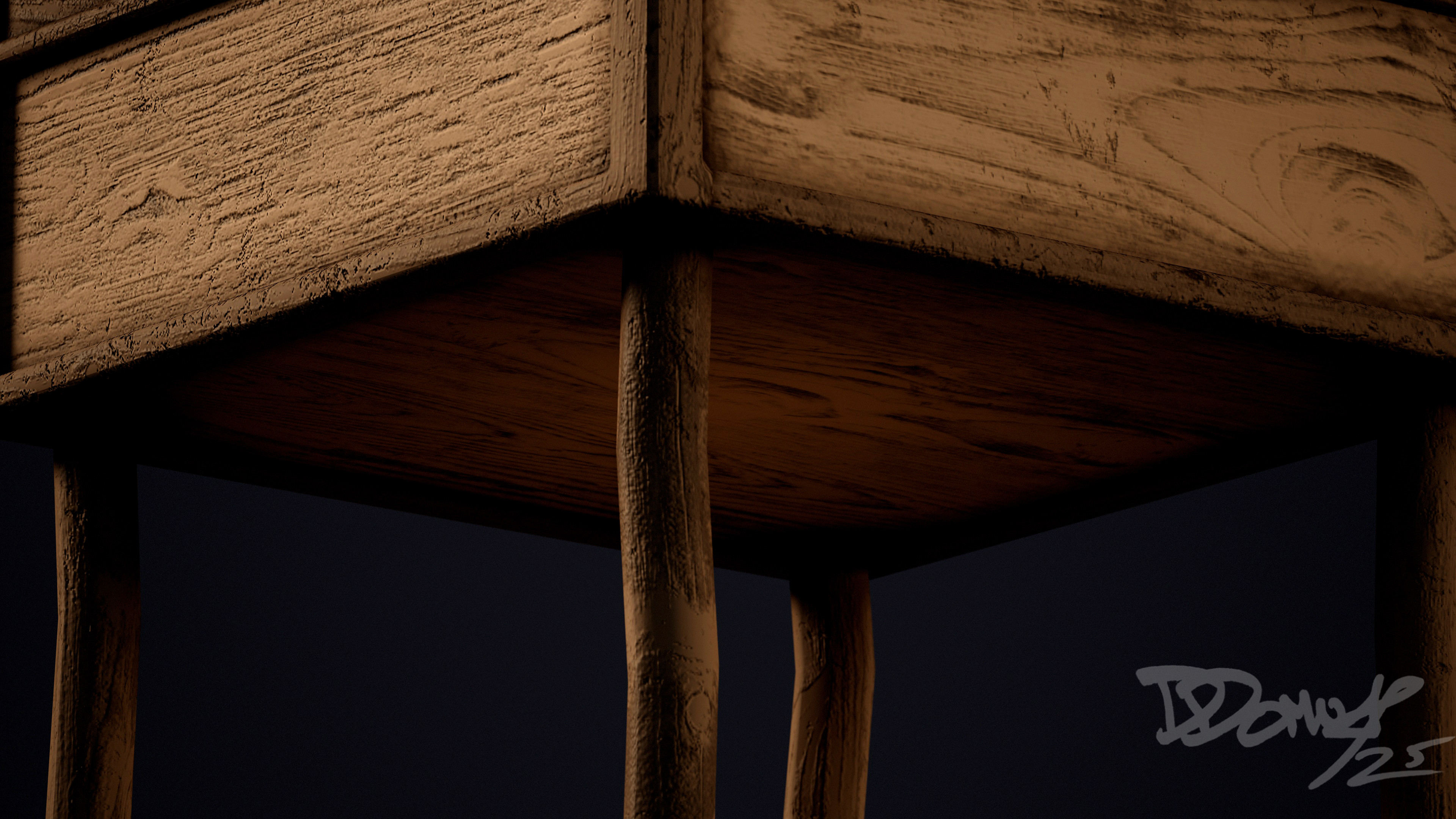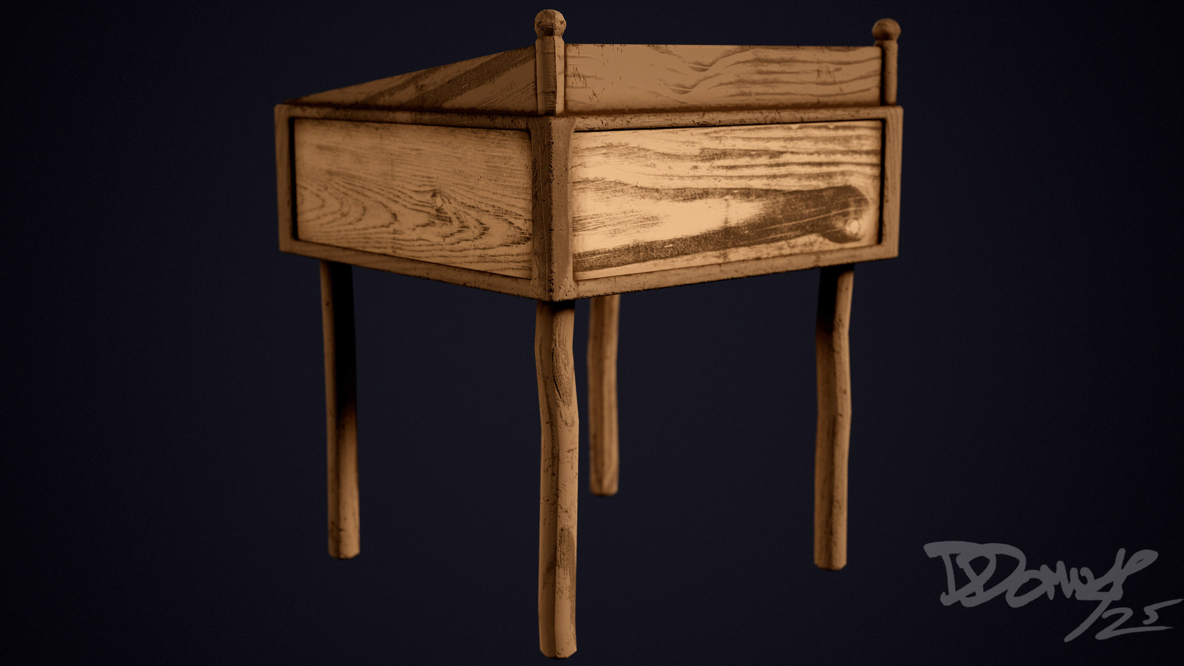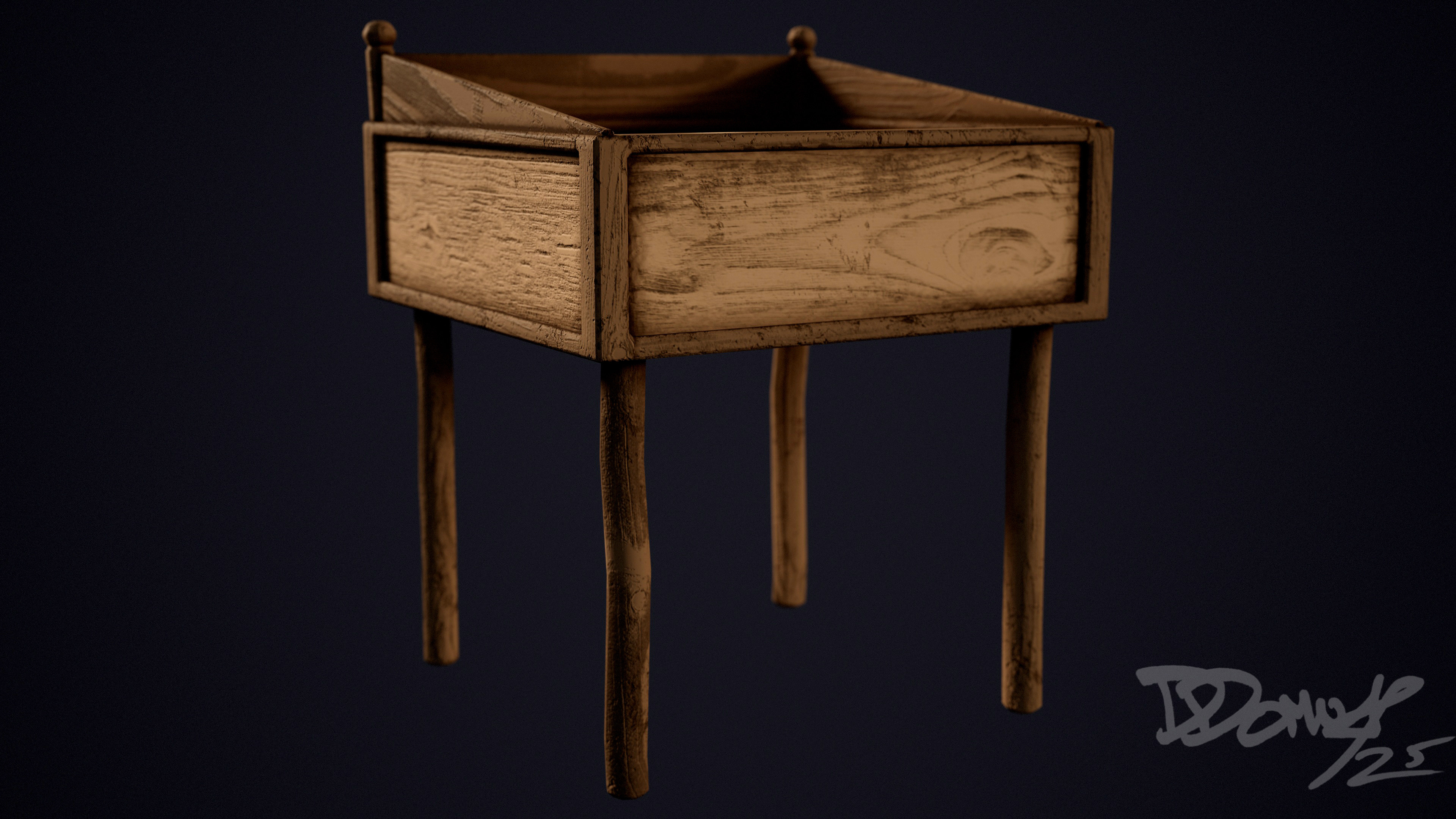 This wooden market stand prop was built as part of an outdoor environment project I was a part of called "New Roosevelt City". I modeled it in Maya and Textured it in Substance Painter. Originally it was used in real-time rendering inside of Unreal Engine 5 with post-processing applied to help create a more stylized look, whereas I have rendered it using Marmoset Toolbag 5 to emphasize a more grounded and realistic feeling/look. With only 1,446 triangles, this market stand is well optimized for real-time rendering while still retaining detail.